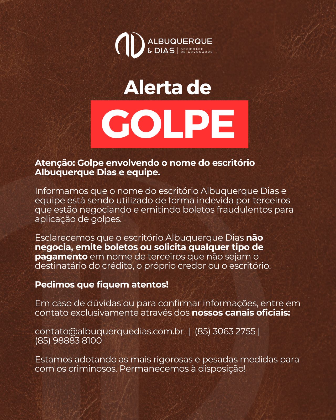 Albuquerque & Dias atua em diferentes ramos do Direito, prestando assessoria jurídica aos mais variados players da sociedade.